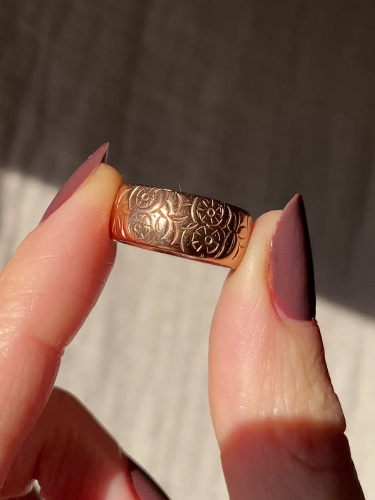 Antique 9ct Rosey Gold Floral Band Ring