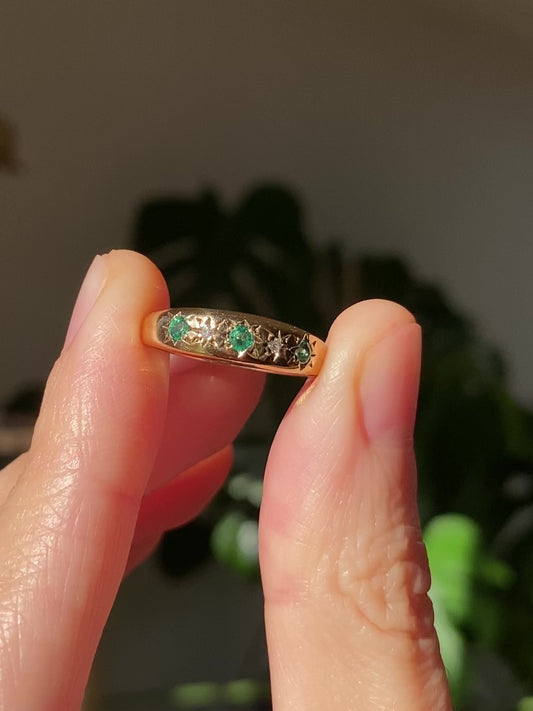 Vintage 9ct Gold Emerald & Diamond Trilogy Ring