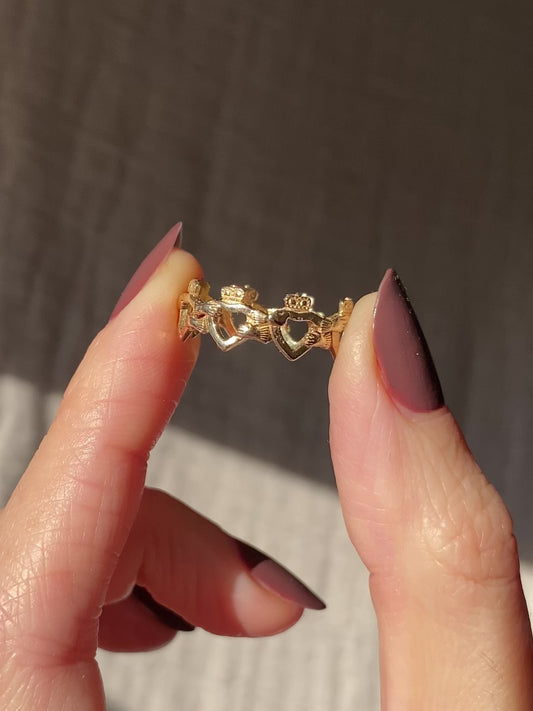 Vintage 9ct Gold Figural Claddagh Eternity Band