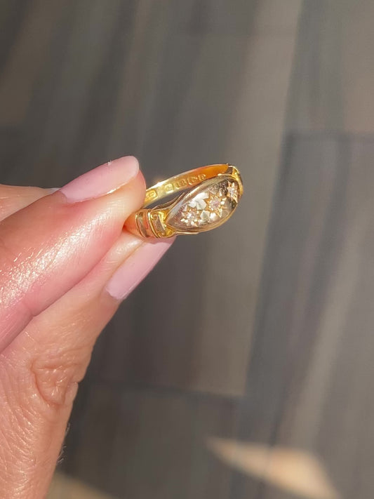 Antique 18ct Gold Diamond Starburst Trilogy Ring
