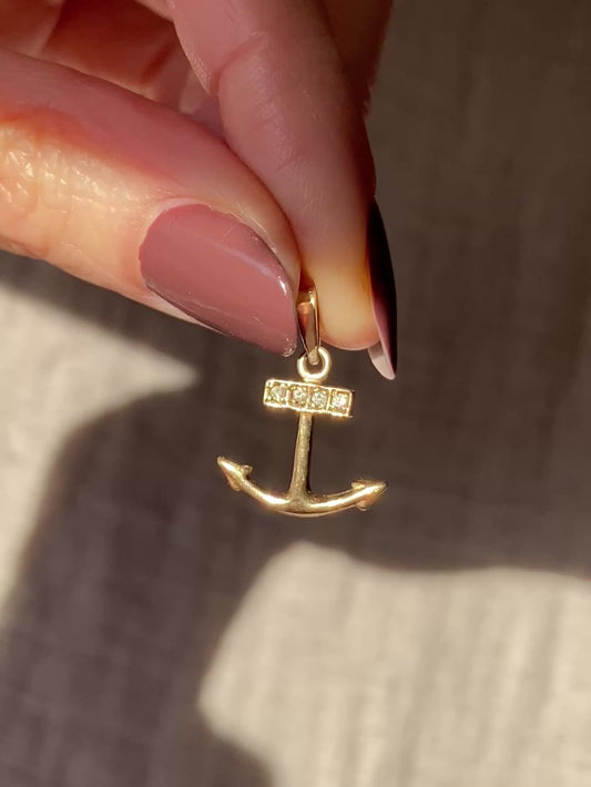 Vintage 9ct Gold Diamond Anchor Pendant