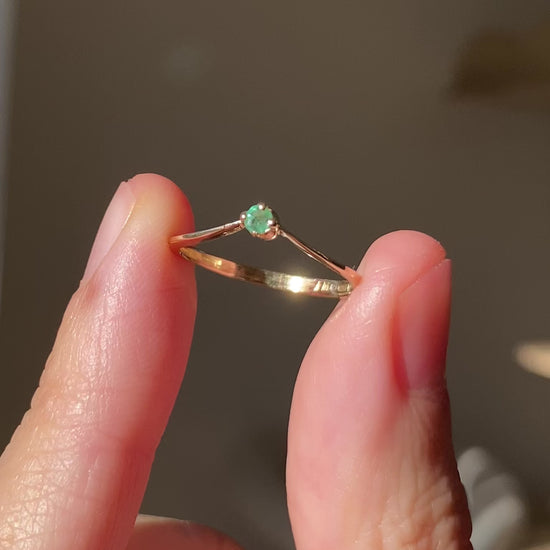 A vintage 9ct gold wishbone ring with a single emerald gem.