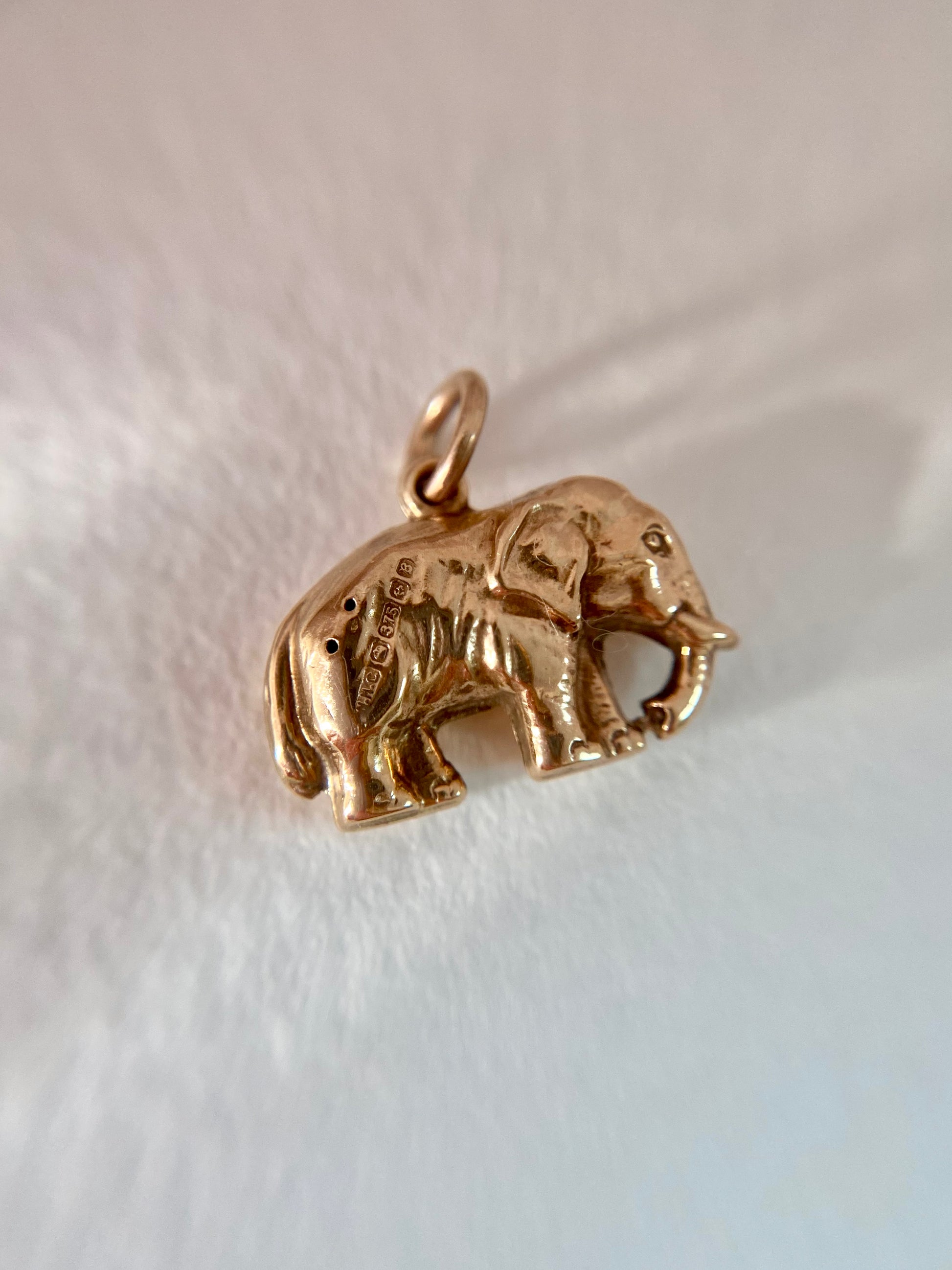 A gorgeous vintage 9ct gold detailed elephant pendant.
