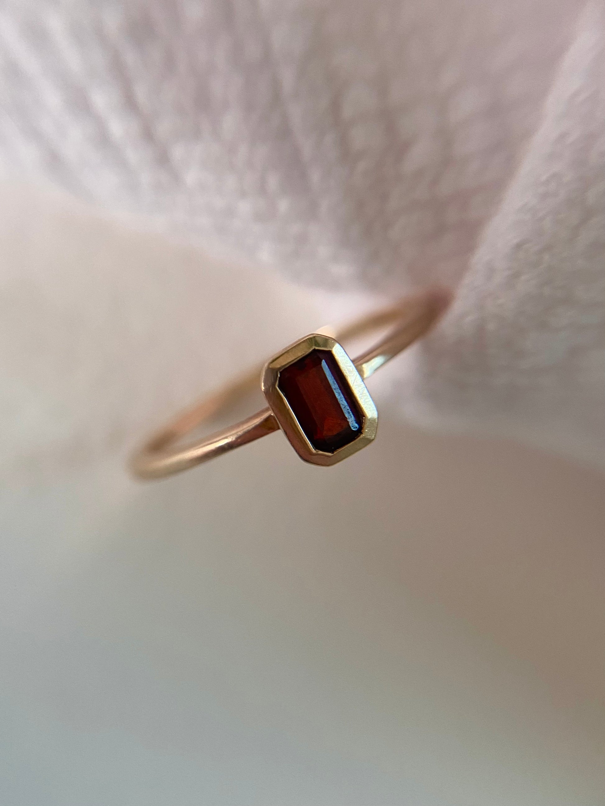 A pretty vintage 9ct gold rectangular garnet solitaire ring.