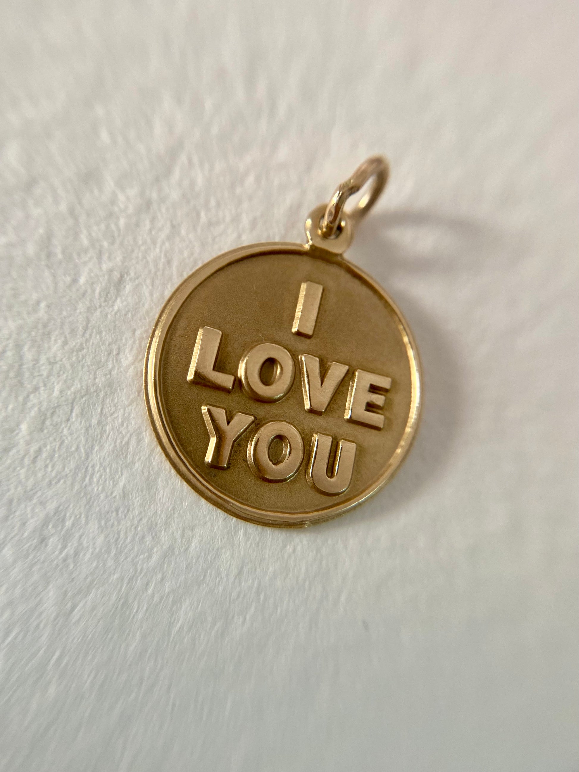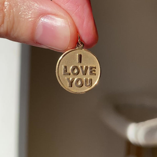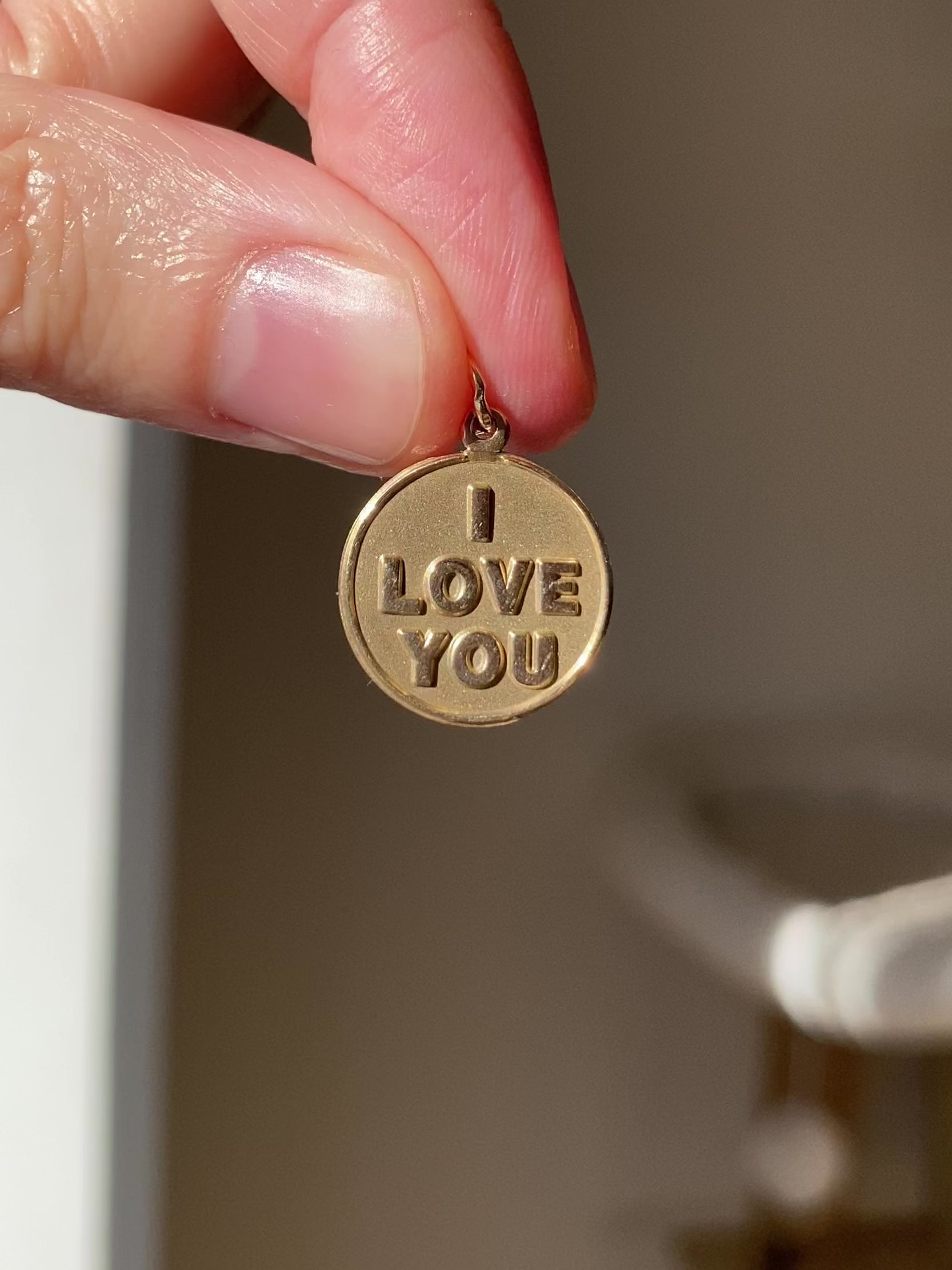 A sweet vintage 9ct gold pendant with I LOVE YOU on the front.