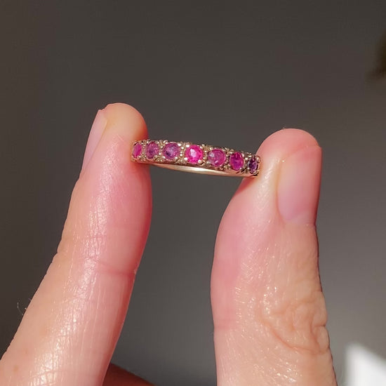 🌟 Vintage 9ct Gold Ruby Half Eternity Ring