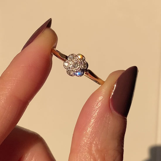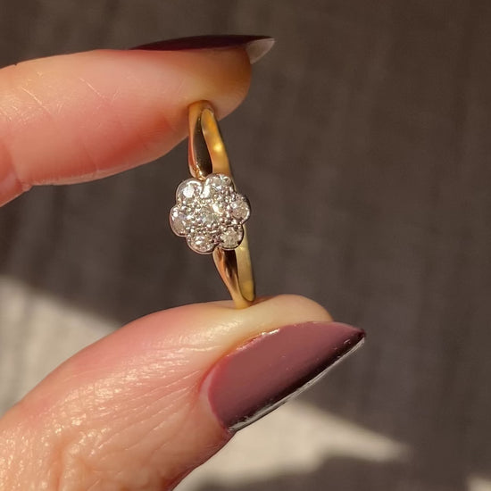 Antique 18ct Gold Diamond Flower Ring