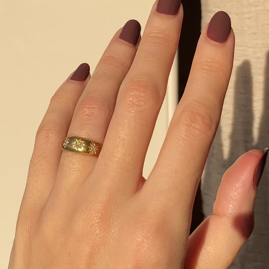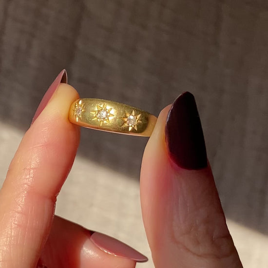 Antique 18ct Gold Diamond Starburst Trilogy Ring