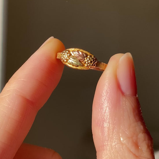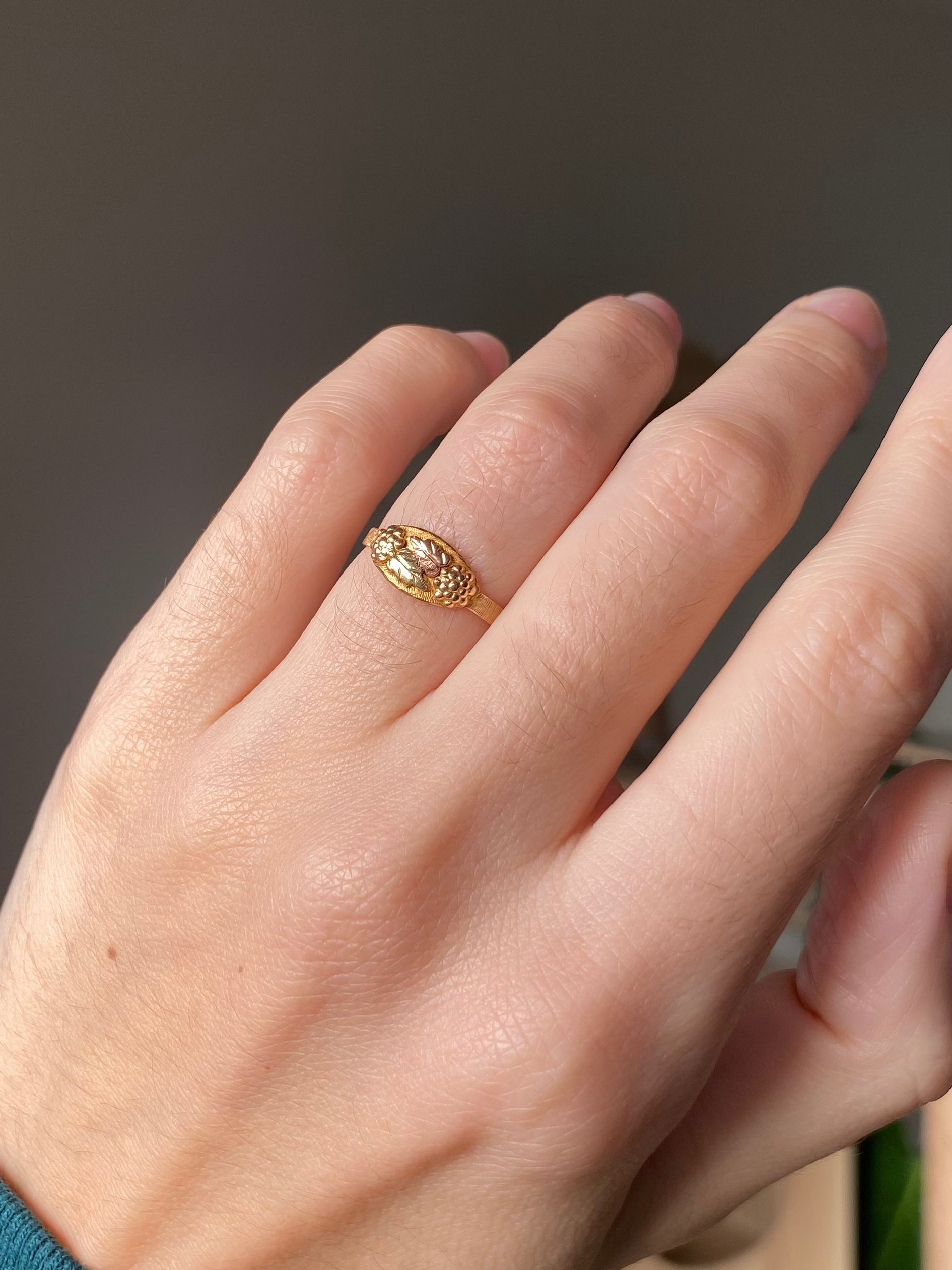 A beautiful preloved solid 10k gold Black Hills ring with its iconic tri-colour grape/leaf design.