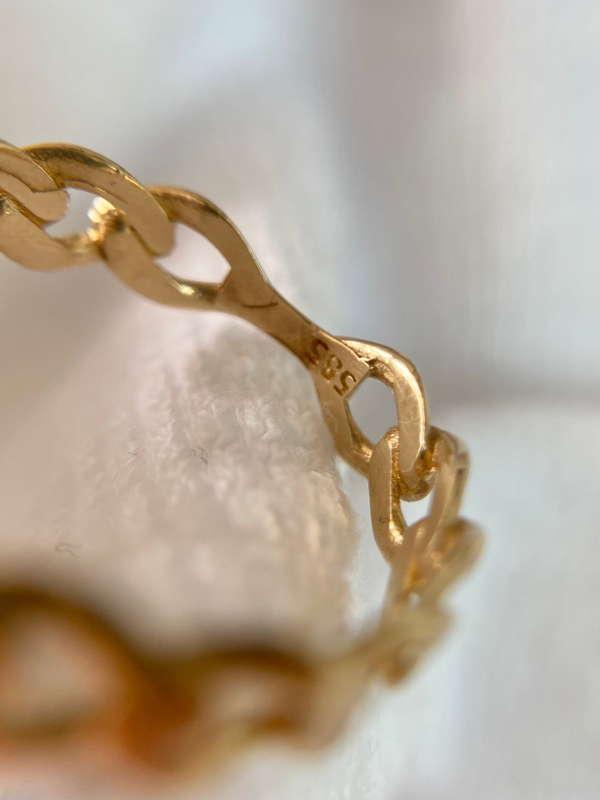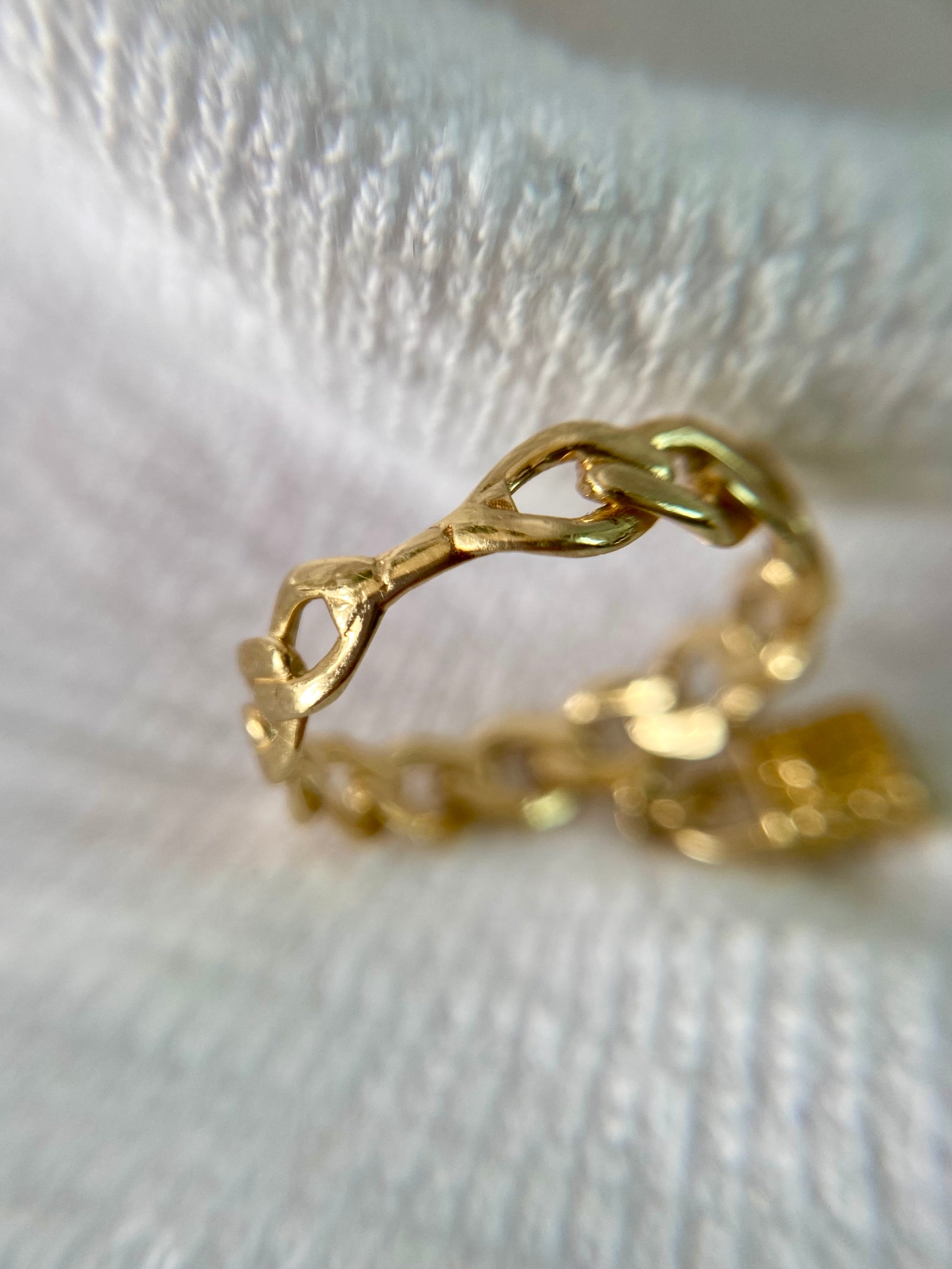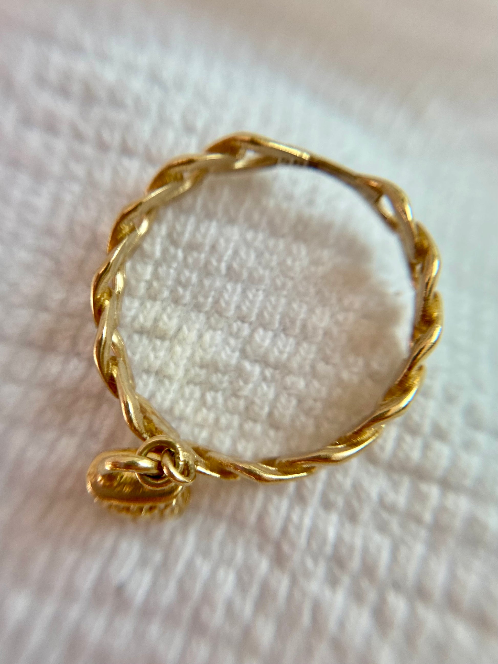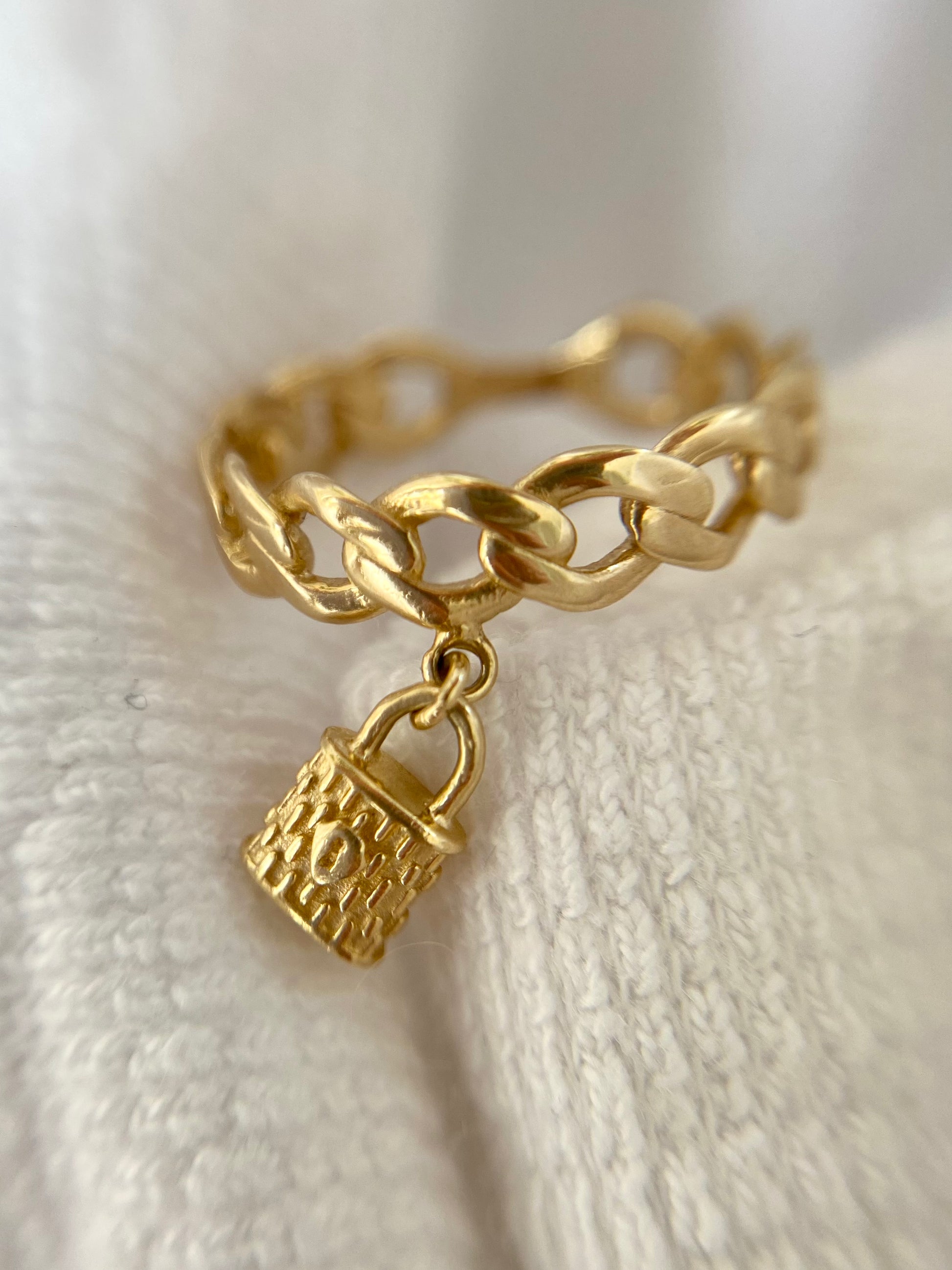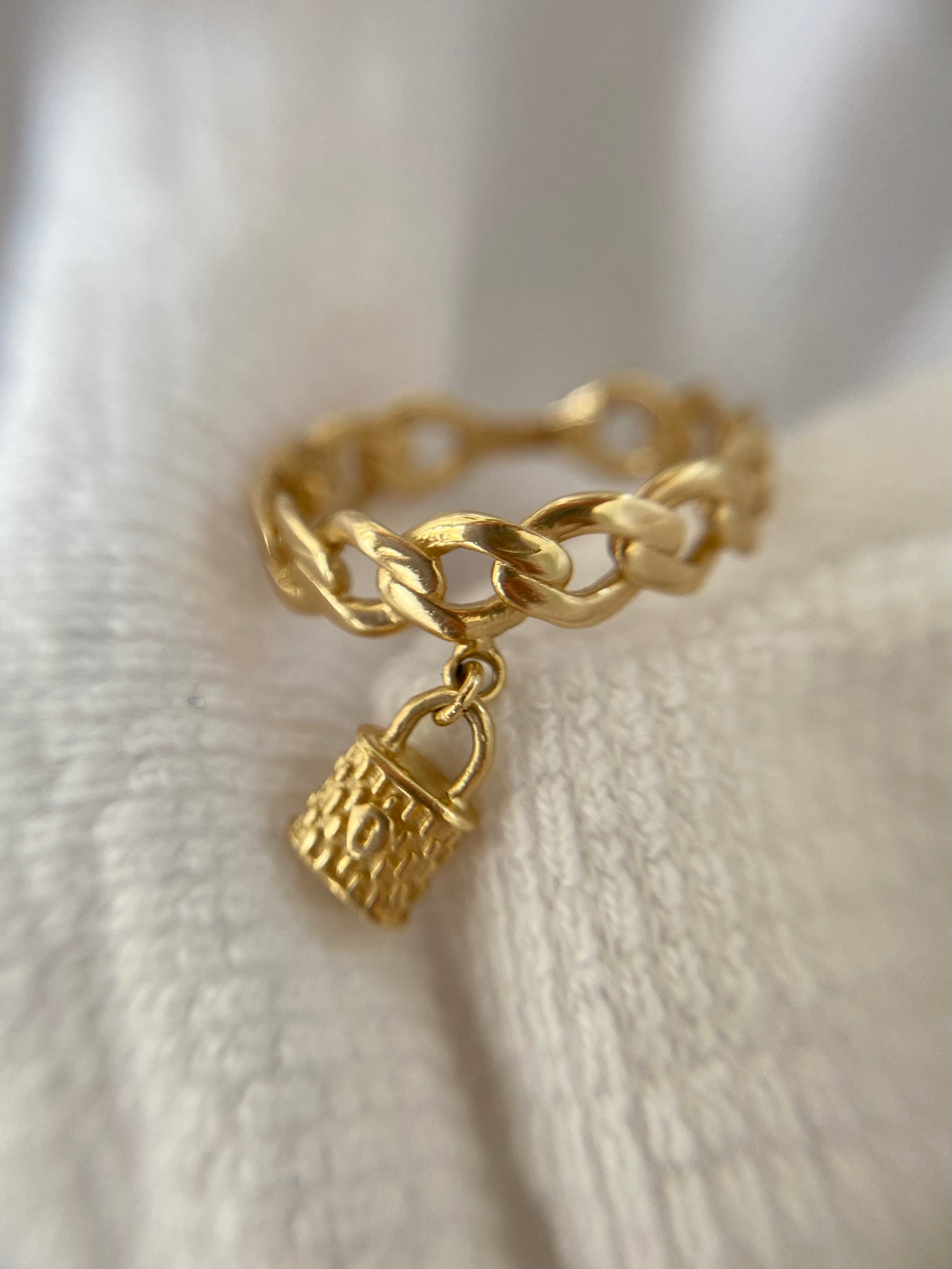 A beautiful vintage 14ct gold chain ring with padlock charm.
