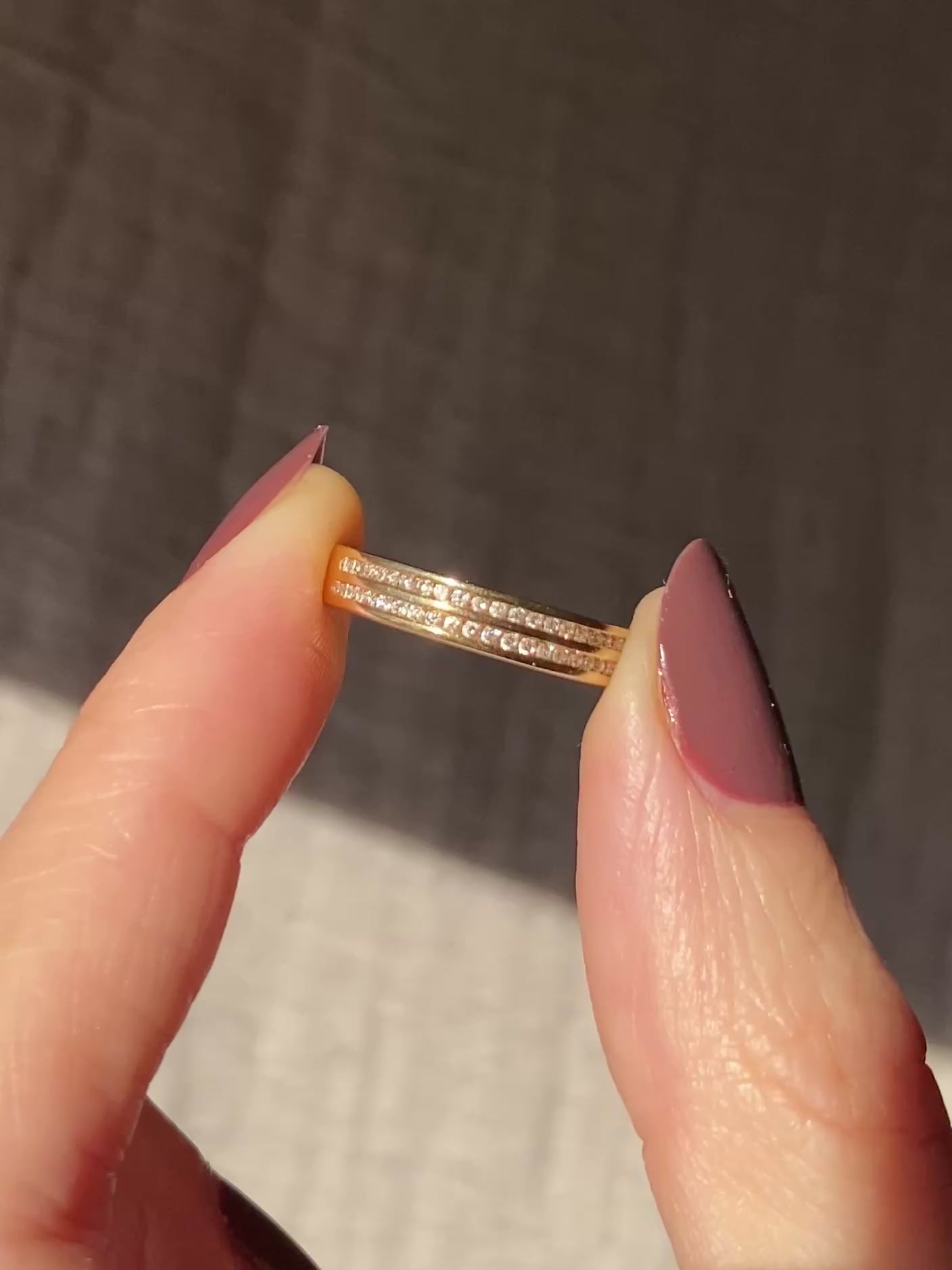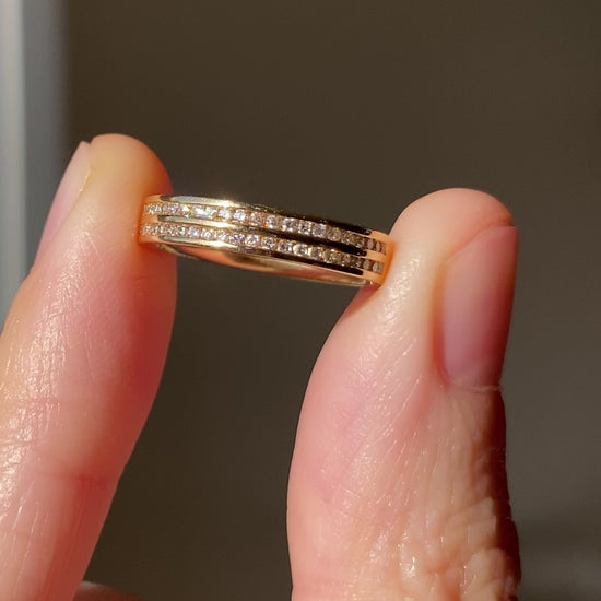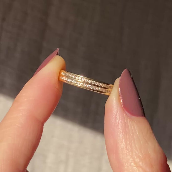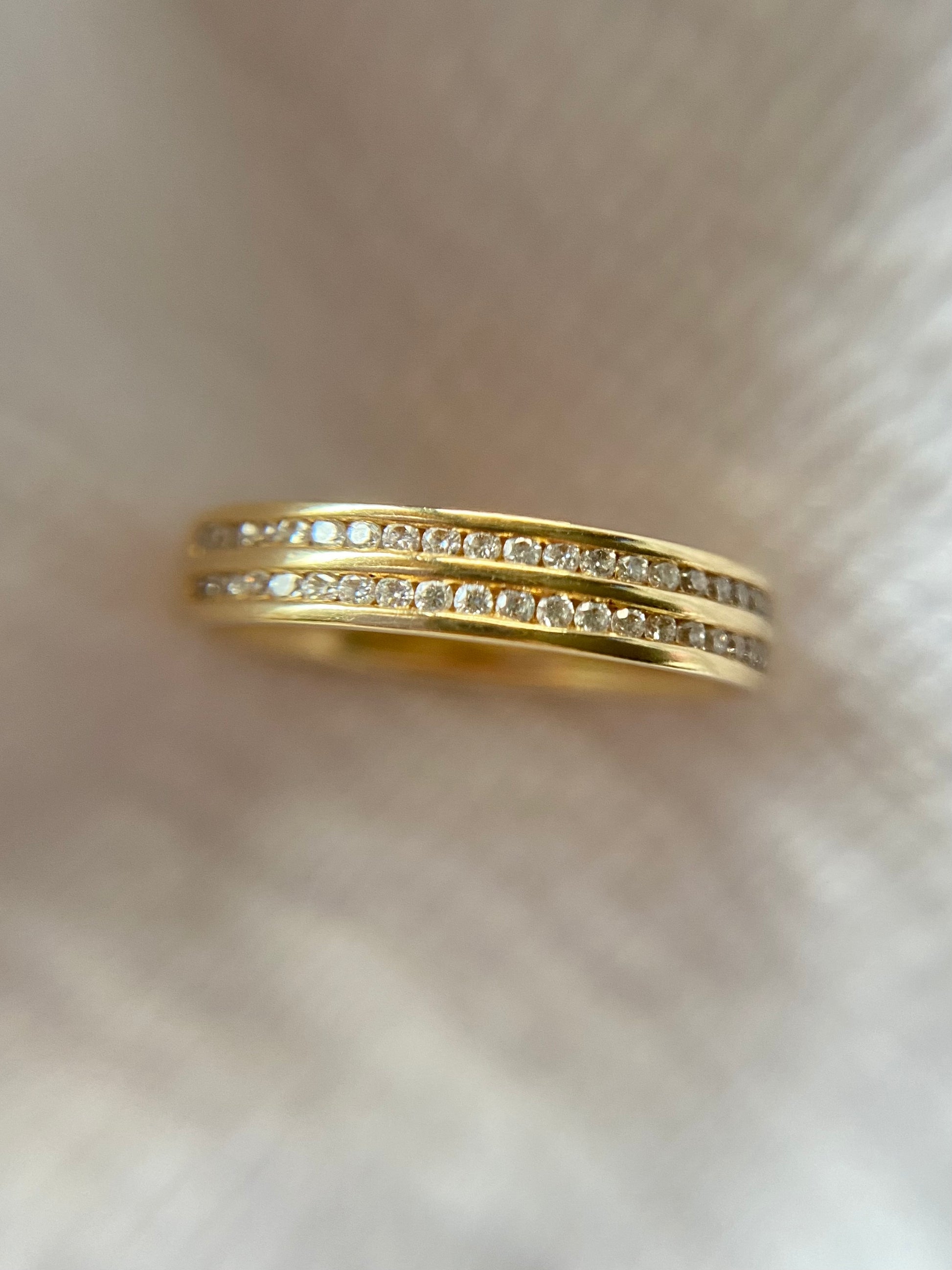 A beautiful sparkly 18ct gold band ring with 2 rows of sparkly diamonds.