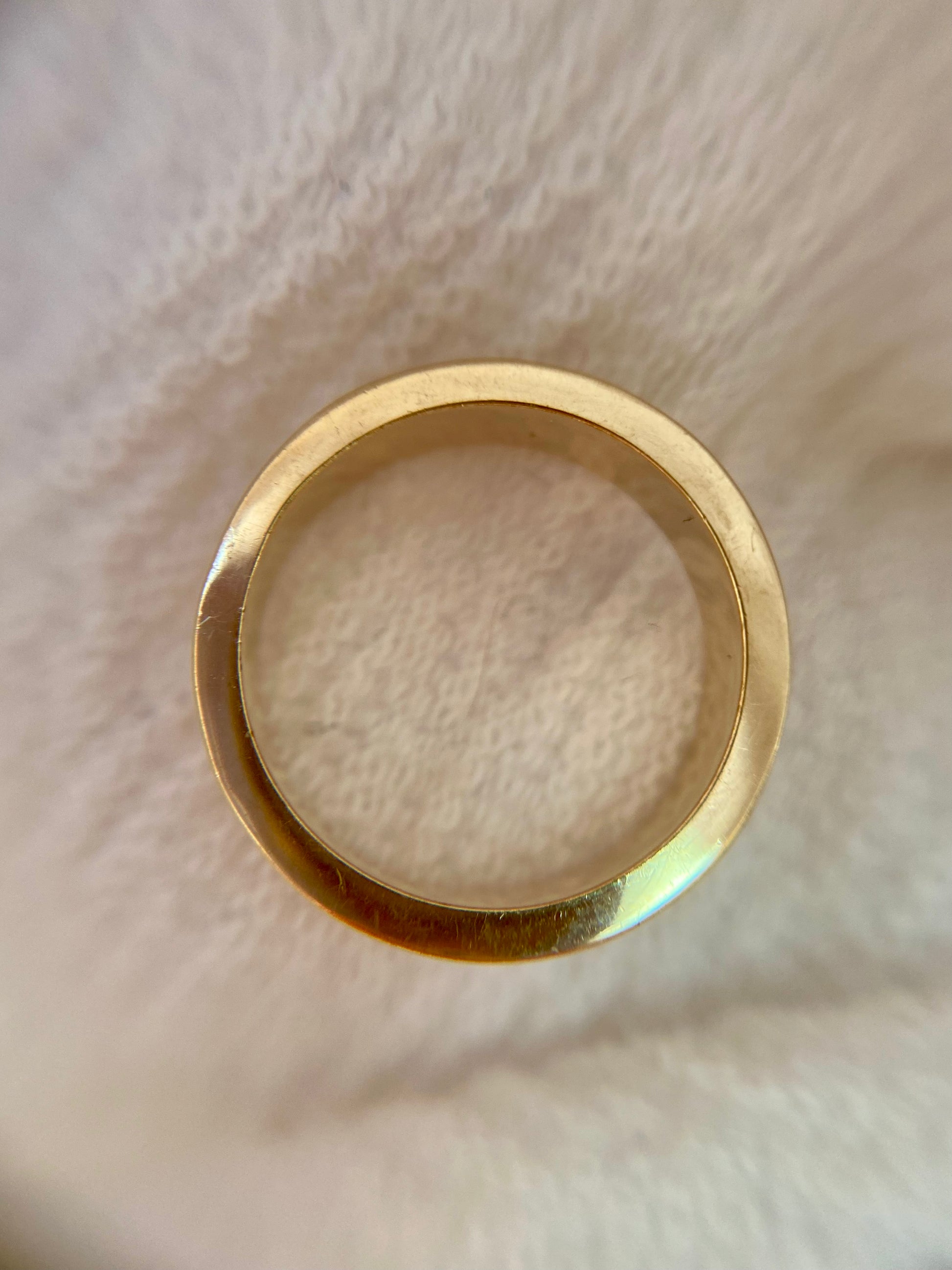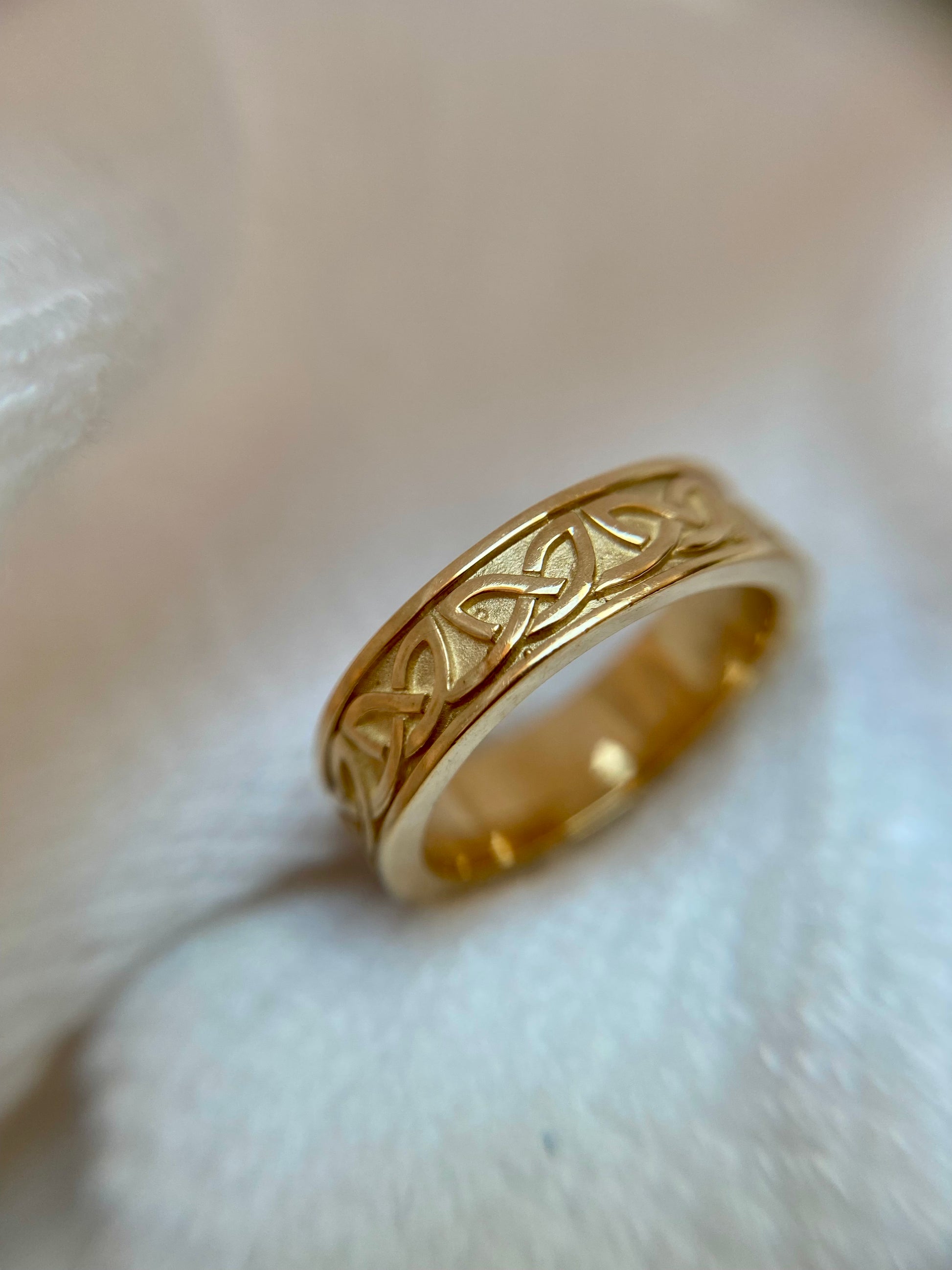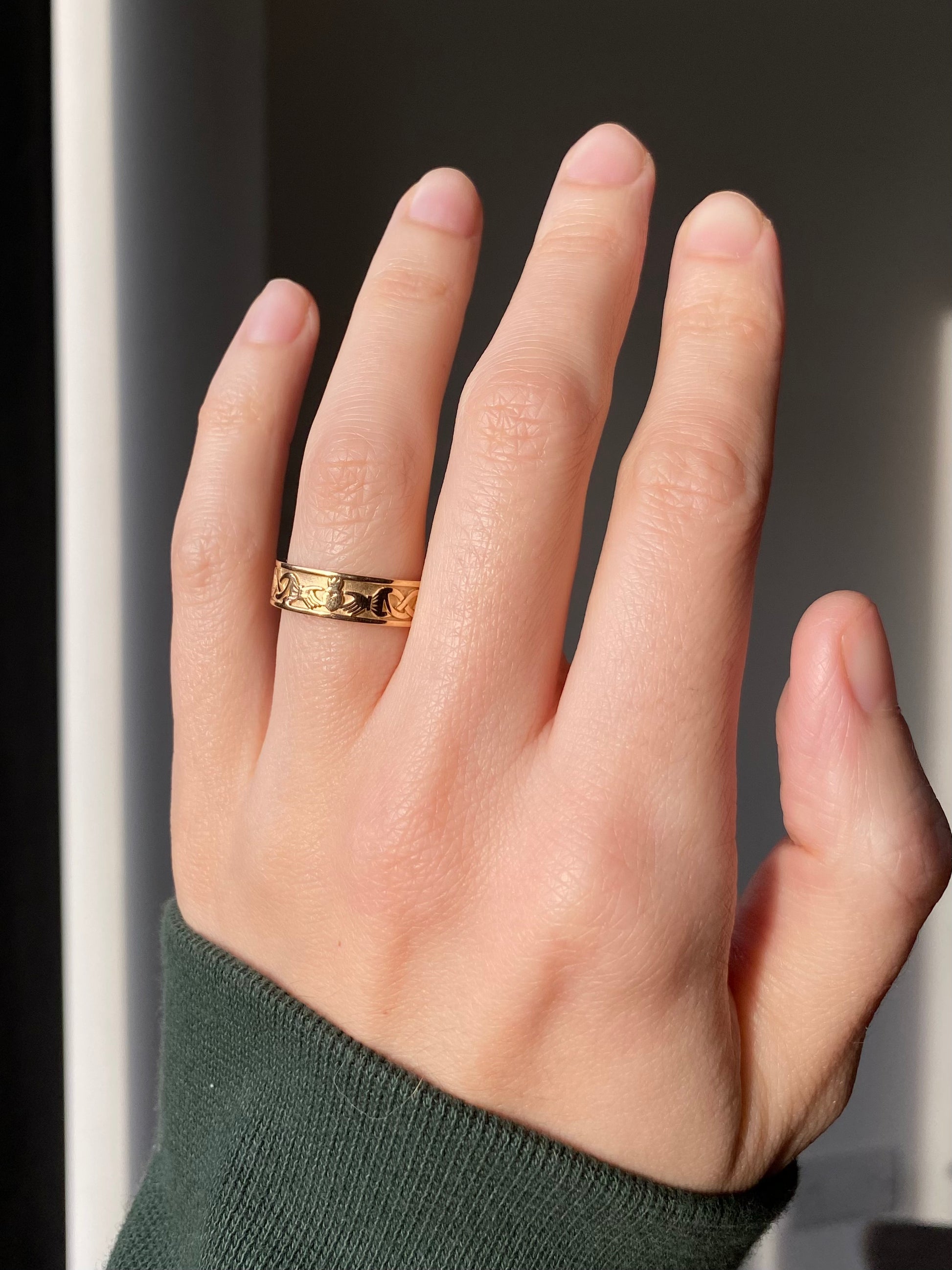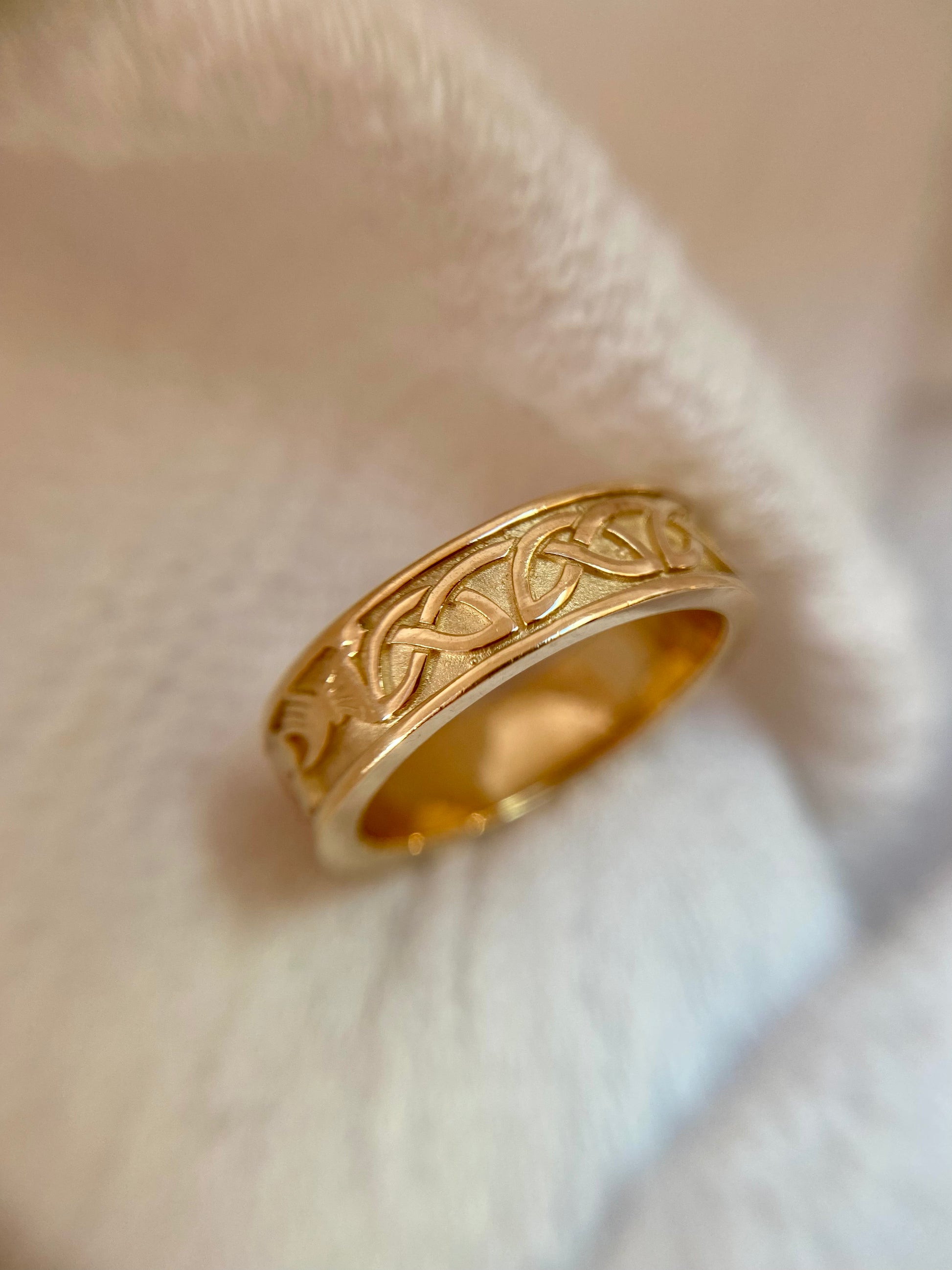 A beautiful vintage 9ct gold claddagh band ring! This ring has a lovely carving all the way around and has a great weight to the band.