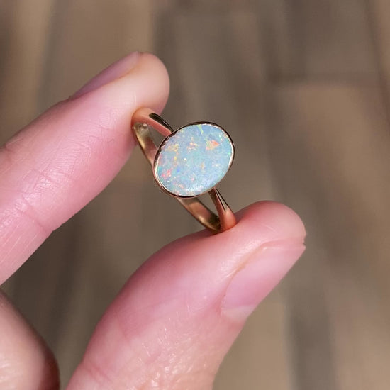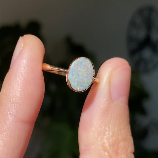 A vibrant 9ct gold opal solitaire ring. Lots of beautiful fiery colours!
