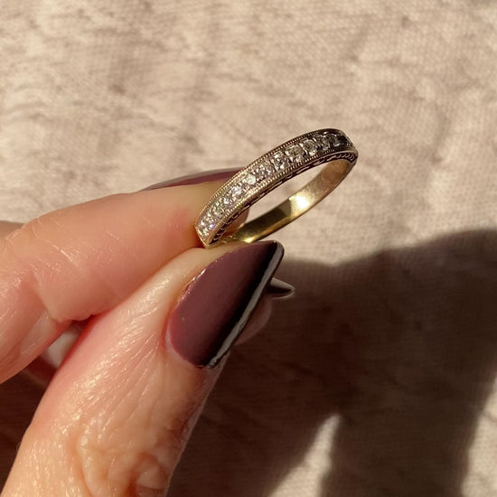 Vintage 9ct Gold Patterned Diamond Half Eternity Ring