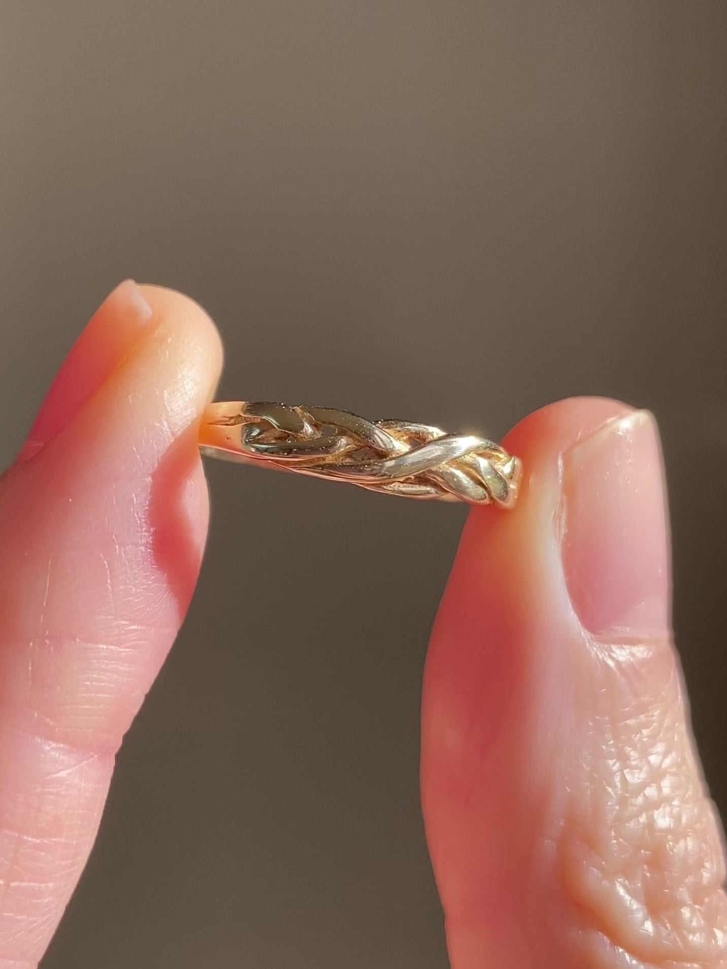 A pretty vintage 9ct gold woven ring. This ring sits low on the hand so is perfect for daily wear.